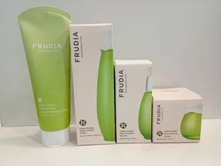 Lote de cuatro productos de cosmética coreana de cuidado facial de la línea Green Grape de Frudia ( Uva verde) Ideal para piel mixta y grasa. - Espuma limpiadora Control de poros 145ml - Tónico Control de poros (195ml) - Serum Control de poros (50g) - Crema Control de poros (55g) • Totalmente nuevos • 100% Originales ❌PRECIO LOTE COMPLETO❌NO NEGOCIABLE❌