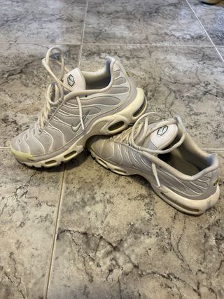 Zapatillas Nike TN Air Max en color blanco. Un clásico para el día a día. - Diseño moderno y cómodo. - Detalles distintivos de la línea TN. - Suela con amortiguación visible. Se han usado menos de un mes, tiene un pequeño raspón en la punta, pero por el resto están como nuevas