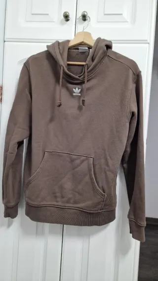 Sudadera con capucha de Adidas en color marrón. - Logo de Adidas en el pecho. - Bolsillo canguro delantero. - Cordones ajustables en la capucha. ES TALLA S PERO TALLA GRANDE. Hombros mide 50cm.