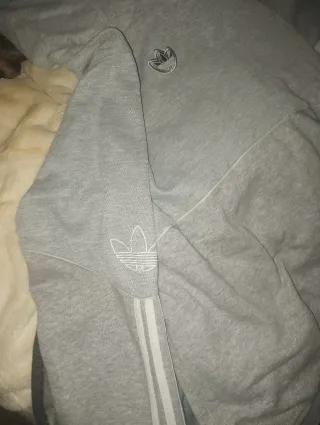 Sudadera Adidas de color gris, talla S. Está en muy buen estado. - Diseño deportivo con detalles en las mangas. - Tejido suave y cómodo. - Perfecta para el día a día.