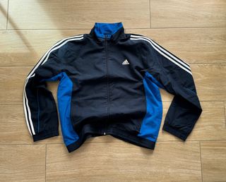 Chaqueta Adidas retro, color azul marino con franjas azules en los laterales. Está en perfecto estado. El único defecto por así decirlo es en la manga que tiene una minúscula quemadura no se ve para nada. Forro de rejilla y cremallera funcional. Pregunta cualquier duda sin problema 🙋🏽♂️ Envío en 12-24 horas 🔥🚙 Precio negociable como siempre🤝🏽💶
