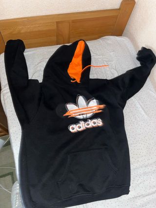 Sudadera con capucha y bolsillo frontal. - Diseño con logo Adidas. - Forro interior de la capucha en color naranja. - Cordones de ajuste en naranja.