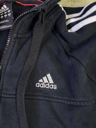 Dos sudaderas adidas con capucha: - Negra con detalles azules Talla M (da poca talla, mas bien S) - Negra con detalles grises Talla L (da muy poca talla, mas bien S)