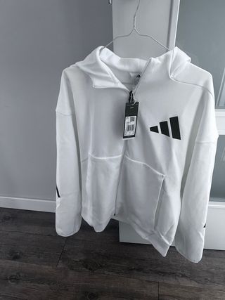 Sudadera con cremallera completa y capucha de la línea Z.N.E. de Adidas. - Diseño moderno con logo. - Tejido cómodo y transpirable. - Talla S (da talla) - Nueva, a estrenar. - 100% autentica.