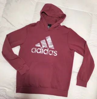 Sudadera con capucha de la marca Adidas, en color rosa y talla M. Es un modelo original y viene con su etiqueta. color rosa empolvado, súper favorecedora y fácil de combinar. ✅ Nueva a estrenar con etiqueta ✅ Tejido suave y cómodo ✅ Bolsillo tipo canguro ✅ Capucha con cordón ajustable ✅ Logo Adidas en relieve en el pecho Perfecta tanto para deporte como para looks casual. Muy cómoda y de gran calidad, ideal para entretiempo o invierno.