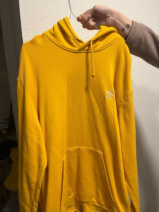 Sudadera con capucha de Adidas en color amarillo vibrante. Presenta un diseño clásico con bolsillo canguro. - Logo de Adidas bordado en el pecho. - Cordones ajustables en la capucha. - Puños y dobladillo elásticos.