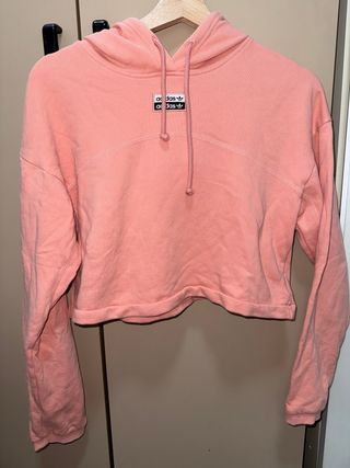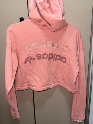 Sudadera corta de Adidas en color rosa. - Diseño cropped. - Capucha con cordones. - Logo de la marca en el pecho.