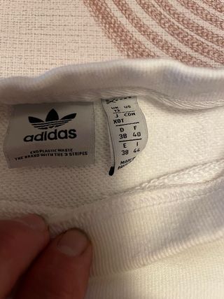 Sudadera Adidas blanca sin capucha y sin bolsillos Talla M es verdadera, usada varias veces pero en bastante buen estado