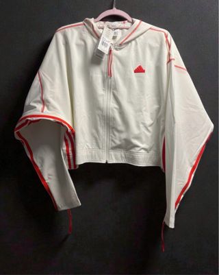 Talla : M Color: Blanco con detalles en rojo coral Chaqueta ligera tipo track jacket, de estilo retro. Fabricada en material suave y transpirable, ideal para el uso diario o entrenamientos ligeros. Cuenta con cierre frontal completo, cuello alto, bolsillos laterales y las clásicas tres franjas Adidas en las mangas. Logo Adidas bordado en el pecho en tono rojo coral. Estado: Nuevo con etiqueta Precio: 35€- Precio de compra 70€ Chaqueta completamente nueva pero tiene una marca, no visible a simple vista ( ver última foto) ORIGINAL✅ ENVÍO 24/48h✅