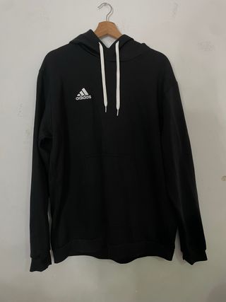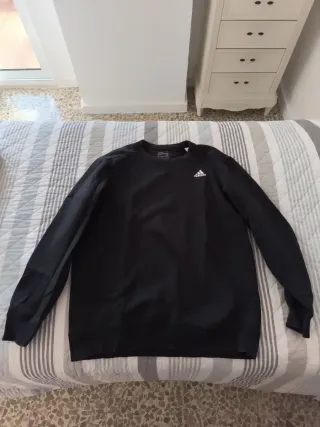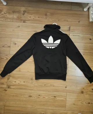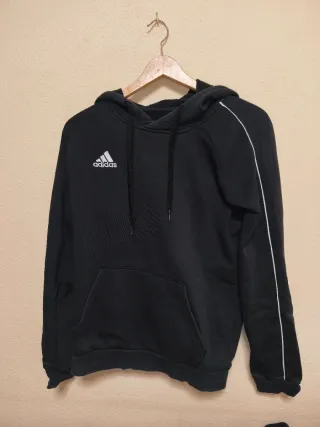 Sudadera con capucha de Adidas. Es de la marca adidas original y es estilo corto ( no llega a las caderas). Es sudadera de “verano” al no tener pelito dentro. Esta como nueva. Pd: La ropa se entrega limpia y planchada :)