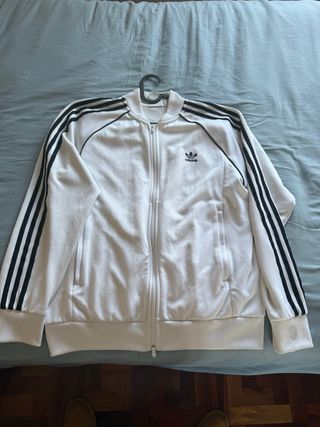 Chaqueta deportiva Adidas Originals con un diseño clásico y atemporal. Perfecta para un estilo casual. - Diseño con las icónicas tres rayas en las mangas. - Logo de Adidas bordado en el pecho. - Cremallera frontal completa. - Puños y cintura elásticos.