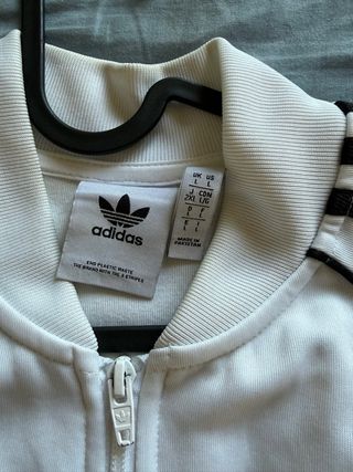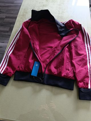 Chaqueta adidas de rayas con el logo de la flor en la espalda. Pone talla 38 pero es una xs/s