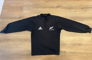 Sudadera deportiva de manga larga con el logo de Adidas y el emblema de los All Blacks. PRECIO NO NEGOCIABLE - Cuello redondo con botones. - Puños elásticos.