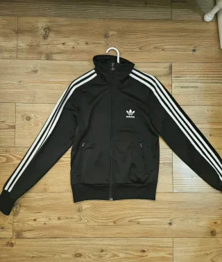 Vendo chaqueta de chándal Adidas Originals, modelo Firebird, en el clásico e impecable color negro con las tres rayas blancas. Es una prenda legendaria, conocida por su tejido brillante de alta resistencia y su estilo retro que nunca pasa de moda. Talla: L (Etiqueta D6 / F180). Composición: 100% Poliéster de alta calidad (Tricot brillante). Logotipo del trébol (Trefoil) bordado en blanco en el pecho. Cuello alto tipo retro. Bolsillos laterales con cremallera oculta. Puños y cintura elásticos para un ajuste perfecto. 📏 Medidas exactas (tomadas en plano): Hombro a hombro: 55 cm. Manga (desde el hombro): 55 cm. Largo total (de