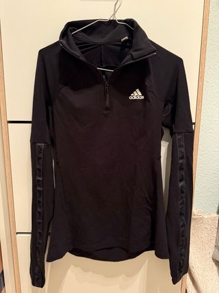 Sudadera deportiva Adidas con detalles de las tres rayas. Original todo lo que vendo, es por que no le vale a mi hijo - Diseño de media cremallera. - Tejido transpirable Aeroready.