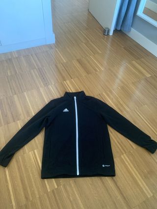 TALLA 11/12 Chaqueta deportiva Adidas de color negro. - Cierre completo con cremallera. - Cuello alto. - Logo de Adidas en el pecho.