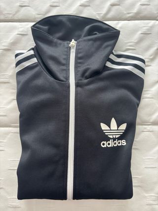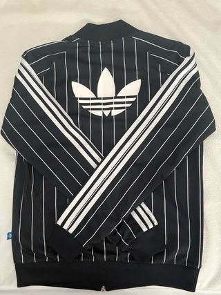 ¡Espectacular chaqueta Adidas Originals estilo track jacket en color negro con raya diplomática blanca (pinstripe)! Es una prenda icónica que combina el estilo deportivo con un toque elegante.