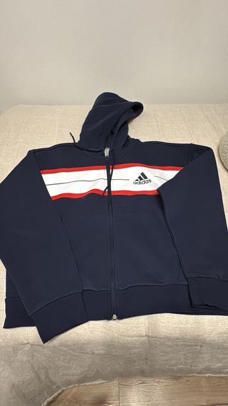 Sudadera con cremallera completa y capucha. Pone talla S pero sirve también para M y si estás delgado/a L - Diseño con paneles en contraste. - Logo de Adidas bordado en el pecho. - Bolsillos laterales. - Puños y cintura elásticos. Negociable