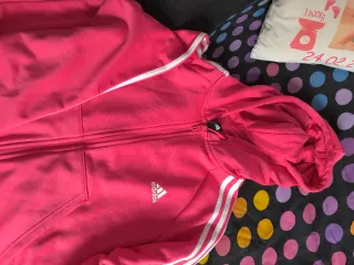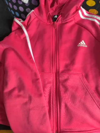 sudadera adidas muy elegante tipo americana, entallada. Es fusia aunque en las fotos se ve más naranja