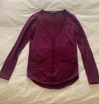 Cárdigan Armani Exchange, confeccionado en lana merino. Ideal para una mujer muy delgada. (Es talla petite en USA). - Diseño de cuello en V. - Cierre de botones. - Dos bolsillos delanteros.