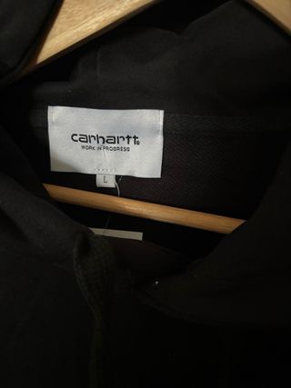 Sudadera Carhartt de color negro. - Logo de la marca bordado en el pecho. - Bolsillo canguro frontal. - Capucha con cordones ajustables.