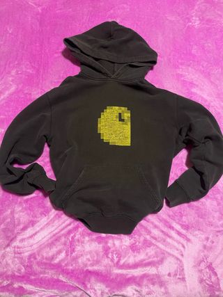 Sudadera con capucha Carhartt en color negro. Presenta un diseño de logo pixelado en color amarillo en la parte frontal. - Capucha ajustable. - Bolsillo tipo canguro.