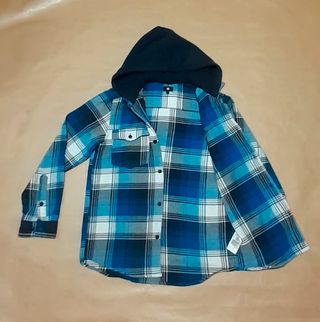 Camisa de cuadros azules con capucha tipo sudadera de la marca deportiva DC. Talla L de niños que equivale a una 36 de adulto. Esta IMPECABLE (se puede ver en las fotos detalle) y la tela es de muy buena calidad. Algodón 100%. Estupenda para vestir "casual" o ponerla como "sobrecamisa".