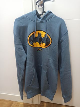 Sudadera con capucha talla M (da bastante talla). Azul grisáceo. Totalmente nueva. DC Batman.