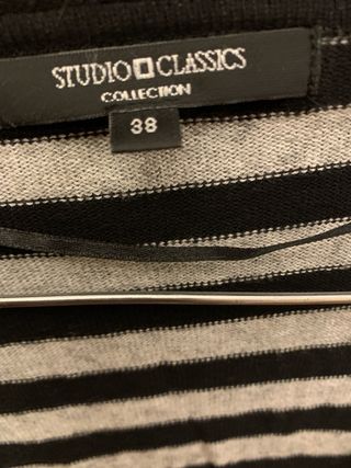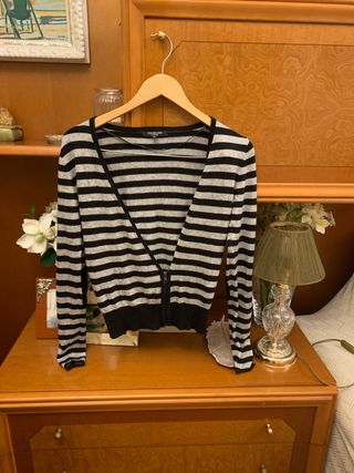 Rebeca de punto de la marca Studio Classics. - Diseño de rayas grises y negras. - Cremallera frontal. - Manga larga.