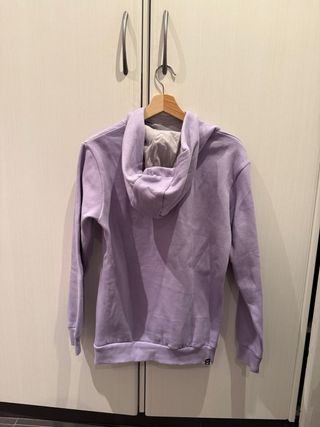 Sudadera negra con letras lilas , unisex , talla S , nueva , no utilizada ni lavada . Marca Bershka. Con capucha sin bolsillos