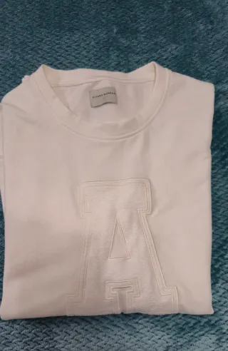 Sudadera de la marca ALVARO MORENO en color blanco. Presenta un diseño con la letra A en relieve en la parte frontal. - Cuello redondo. - Manga larga. - Detalle de letra A texturizada.
