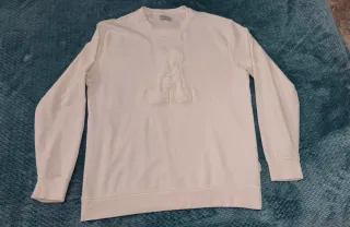 Sudadera blanca de manga larga. - Cuello redondo. - Tela gruesa y cálida. - Etiqueta de la marca visible.