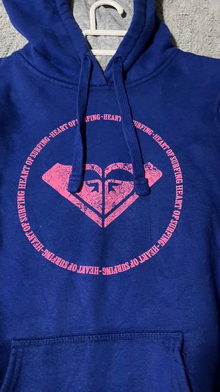 Sudadera con capucha de color azul y forro interior gris. Presenta un diseño circular en la parte delantera con el logo de la marca. - Logo de Roxy en rosa. - Bolsillo canguro frontal. - Capucha con cordones.