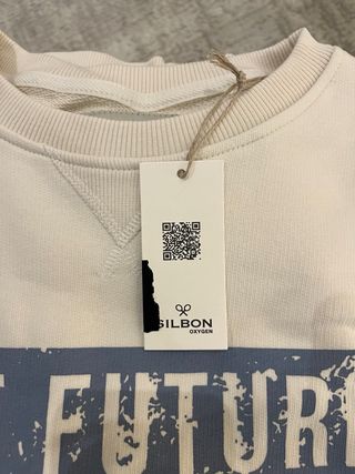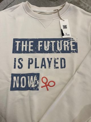 Sudadera de la marca Silbon en color blanco y talla L. Presenta un diseño con texto THE FUTURE IS PLAYED NOW en la parte delantera. - Cuello redondo. - Puños y bajo elásticos. - Detalle bordado en la parte frontal.
