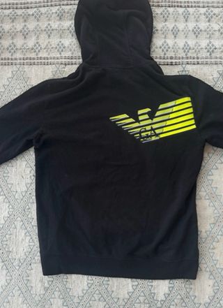Sudadera con capucha de la marca EA7 en color negro y detalles en verde. - Logo EA7 en el pecho. - Aguila en la espalda. - Capucha ajustable con cordones. - Bolsillo tipo canguro delantero. - Puños y bajo elásticos. - Materiales increíbles. Cualquier duda no repares en consultarme!✅😊