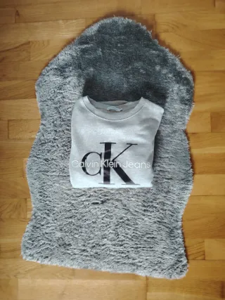 Sudadera de Calvin Klein Jeans en color gris. Presenta el logo de la marca en grande en estampado de impresión. - Diseño con cuello redondo. - Manga larga. -Original. Realmente como nueva PRECIO NEGOCIABLE!!