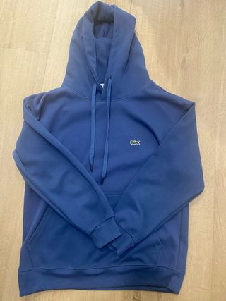 Sudadera con capucha de la marca Lacoste. - Logo de cocodrilo bordado en el pecho. - Bolsillo tipo canguro. - Cordones ajustables en la capucha. Tiene 2 usos me la regalaron y no es mi talla