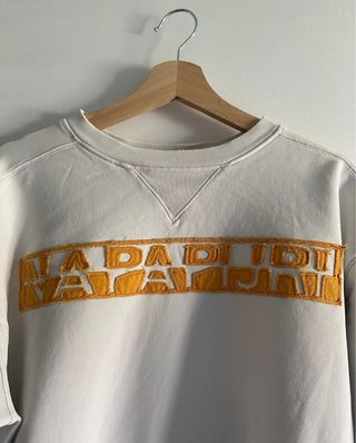 Sudadera Napapijri con un diseño llamativo. - Color blanco con detalles en amarillo. - Logo de la marca en la parte frontal.