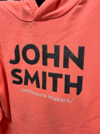 Sudadera con capucha de la marca John Smith. - Color coral. - Diseño con texto JOHN SMITH /Athleisure Makers/ en negro en la parte delantera. - Bolsillo canguro frontal.
