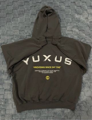 Sudadera con capucha de la marca YUXUS. - Diseño Providing Since Day One. - Estampado con texto y logo. - Material cómodo y duradero.