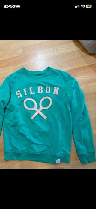 Sudadera de la marca Silbon con un diseño deportivo. - Color verde azulado. - Cuello redondo. - Manga larga. - Logo de la marca en la parte delantera.