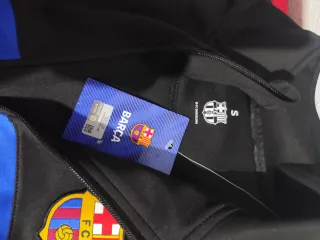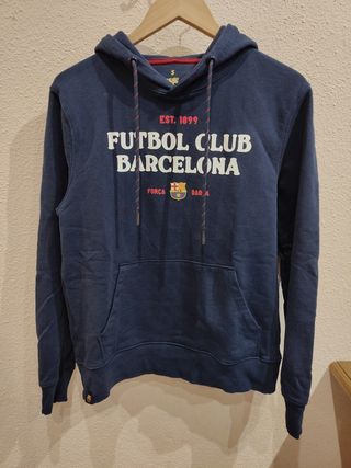 Sudadera con capucha del FC Barcelona, talla S. Está en muy buen estado. - Diseño clásico con el escudo del club. - Color azul marino. - Perfecta para aficionados al fútbol.