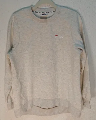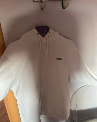 Sudadera con capucha de la marca Fila, en color beige. Es una prenda suave y cómoda, ideal para el día a día.