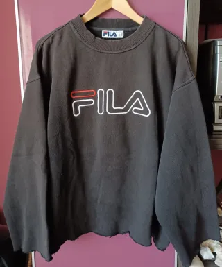 Sudadera de estilo vintage y retro de la marca Fila, talla XL oversize, se puede usar unisex. Un básico para cualquier armario. - Diseño clásico con logo. - Cuello redondo y manga larga. - Bajo y mangas deshilachadas para un look desgastado. Usada, pero se conserva en buen estado. VENTA SOLO ENVÍO.