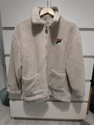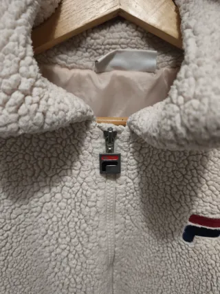 Chaqueta de borreguito con el logo de Fila. Es color hueso/beige Dos bolsillos delanteros.