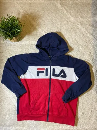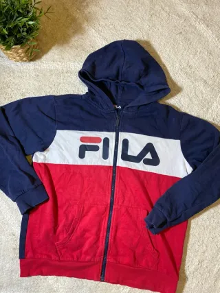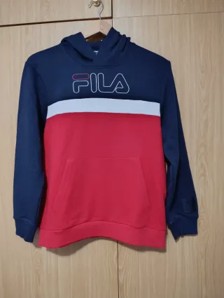 Sudadera con capucha de la marca Fila. Presenta un diseño clásico con el logo de la marca en el pecho. - Logo Fila en blanco y rojo. - Bolsillo canguro delantero. - Capucha con cordones ajustables. perfecto estado