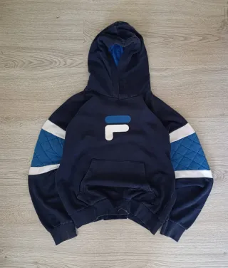 Sudadera con capucha de la marca Fila. Talla M/12 Como nueva, usada un par de veces - Combinación de colores azul marino, blanco y amarillo. - Logo de Fila en el pecho. - Capucha con cordones ajustables