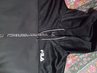 Preciosa sudadera corta de manga larga. Es de color negro con el logo de Fila en dorado. - Perfecta para cualquier ocasión. - Talla única. - En muy buen estado.