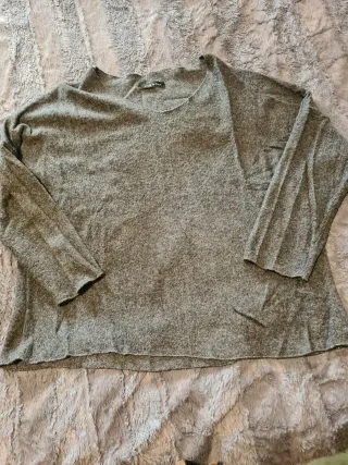 Jersey tipo punto ligero, media manga en color gris y el filo del cuello plateado