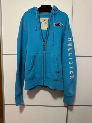 Sudadera con capucha y cremallera completa. Aunque pone talla mediana ,corresponde más a una talla s medidas 35 de hombros 59 de largo - Diseño con logo Hollister California en el pecho. - Bolsillos frontales tipo canguro. - Puños y bajo elásticos.